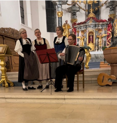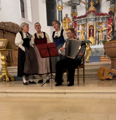 Highlight war die Gast Formation Remus Regli  an der Gitarre in Begleitung und dem Schwyzerörgeli, dazu Mathias Hunziker mit der Sopran Blockflöte. Er bezauberte uns mit fröhlichen Musikstücken. Das interne Gesangs Terzett vom Bernerchörli Frick  erfreute uns mit schönen Jodelliedern. Das Bernerchörli machte gesanglich eine Reise ins Emmental. Mit den zwei Liedern: E Trueberbueb und s`Truebermeitschi. Nach dem schönen Konzert gab es jeweils einen feinen Apero. Süssmost Wein und feinen Zopf, gebacken von den Mitgliedern des Bernerchörli Frick.
