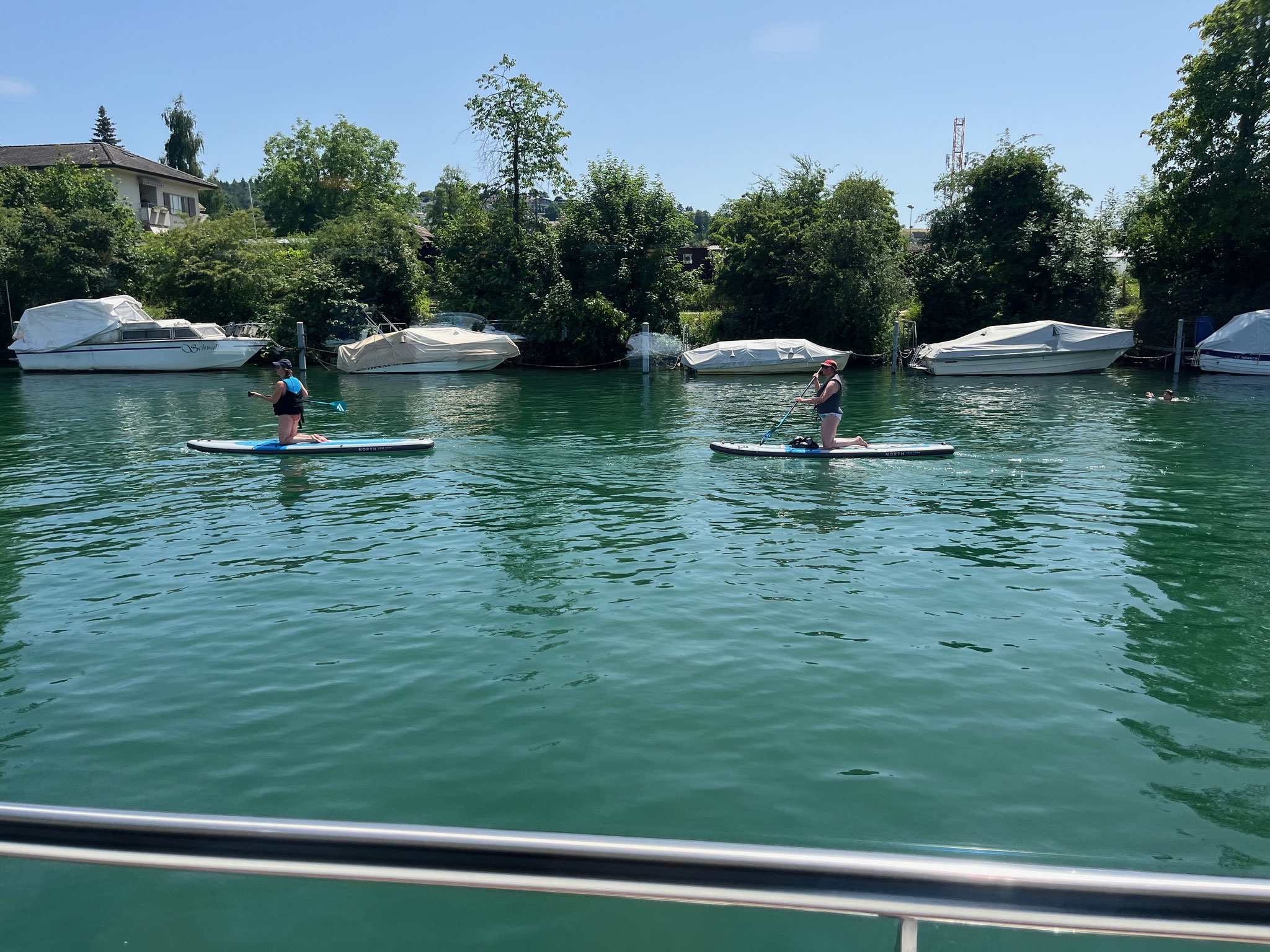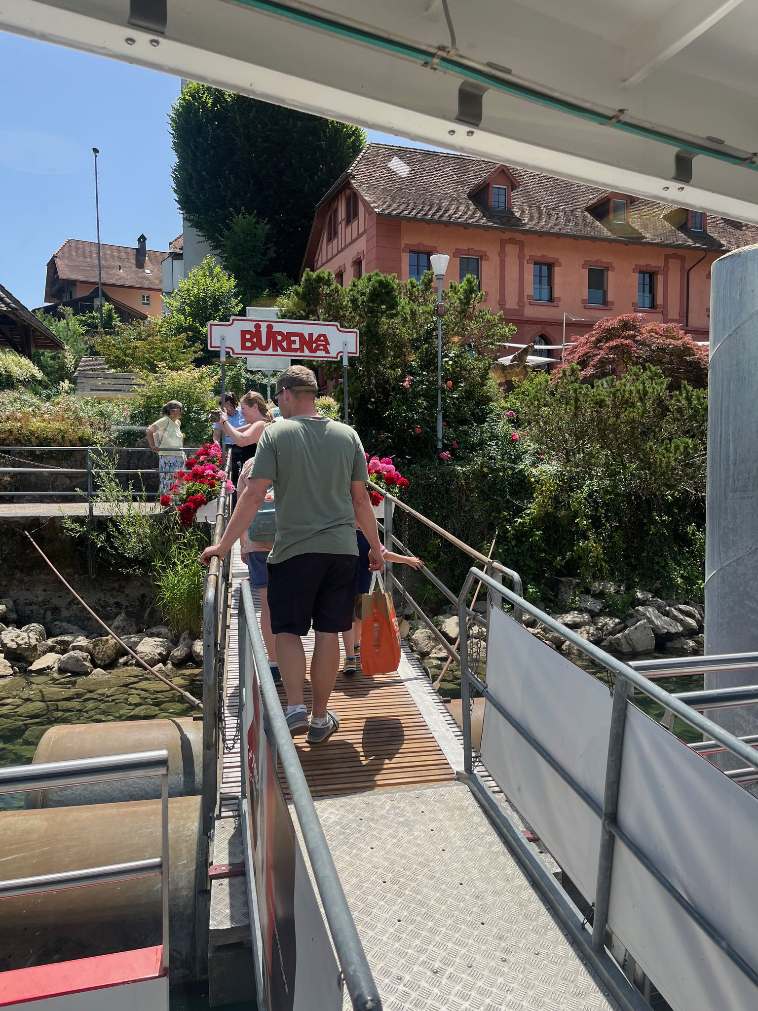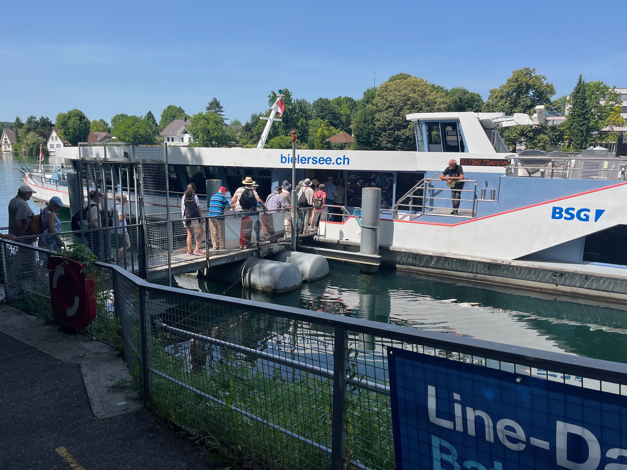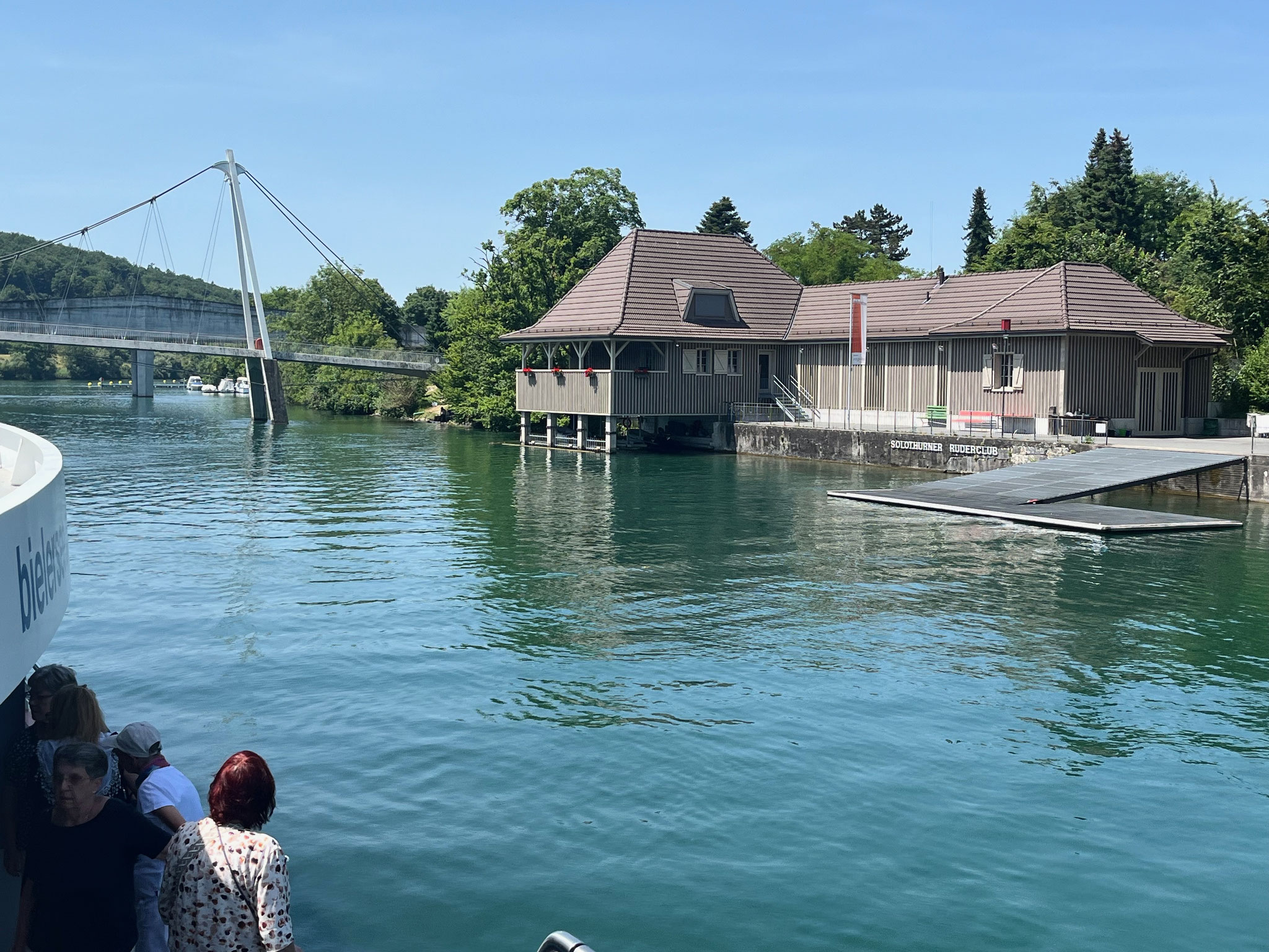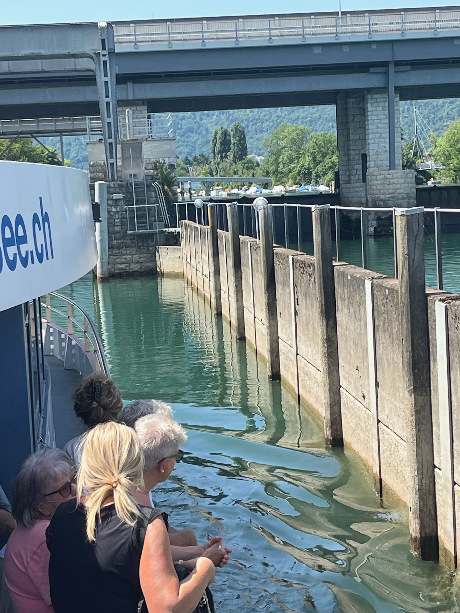 Während der Aareschiffsfahrt genossen wir alle eine feines Mittagessen mit Dessert. Immer wieder den Blick zum Jura und in Büren an der Aare kreuzten sich die Schiffe im Gegenverkehr. Annemarie und Elisabeth sangen zur Freude vieler Leute im Duett ein paar schöne Jodellieder. In Port dann die Schleuse und so kamen wir dann in Biel an.