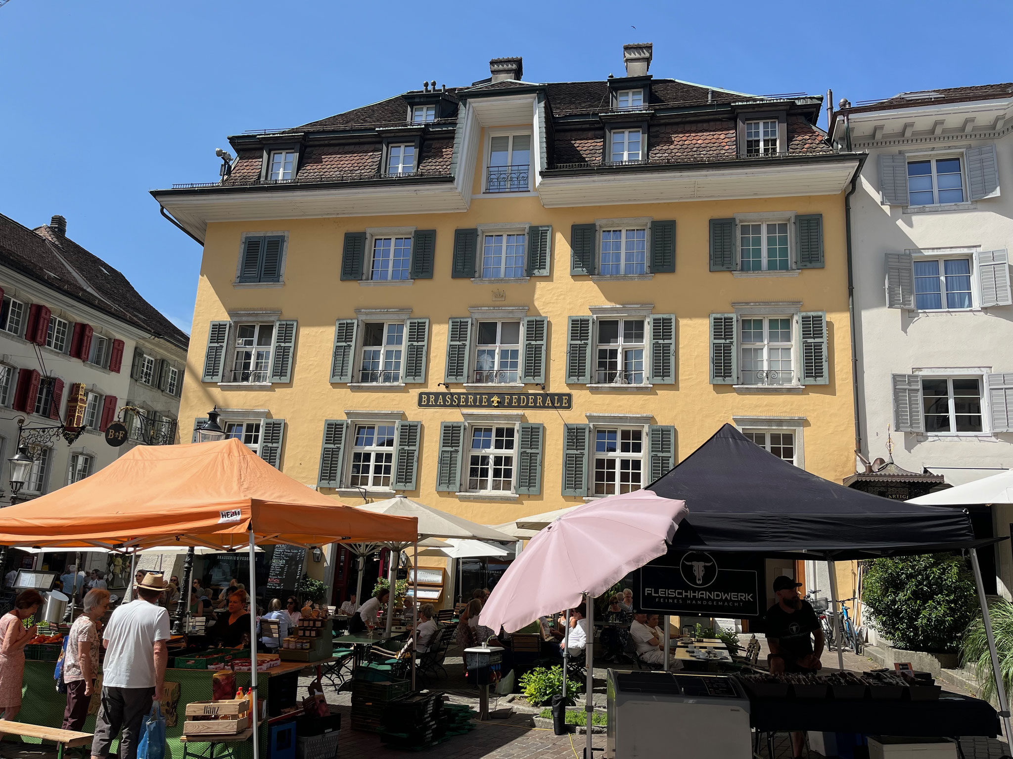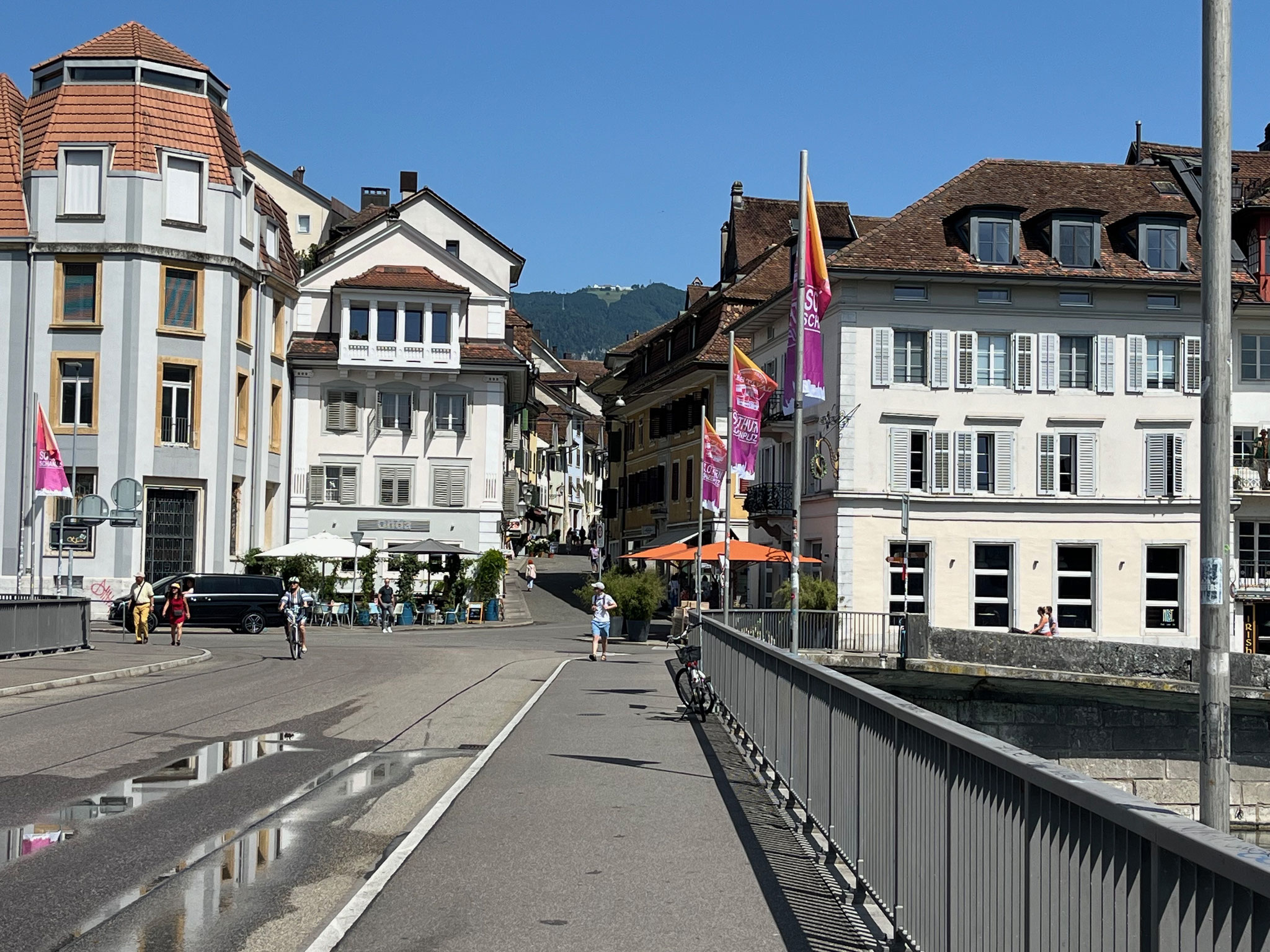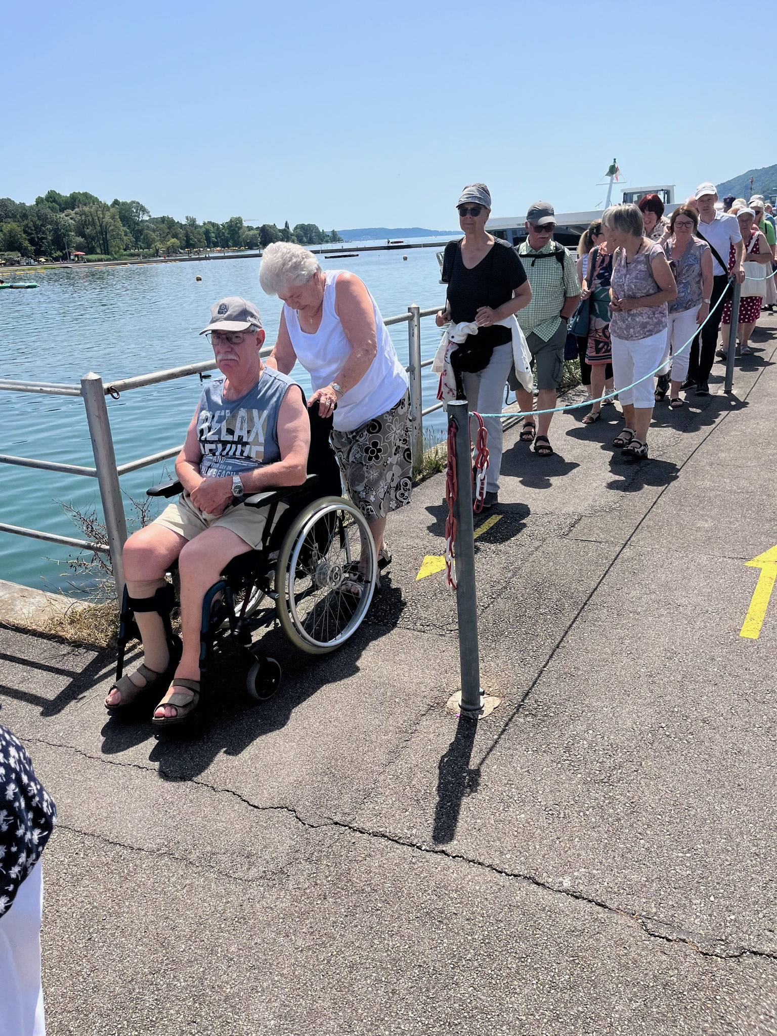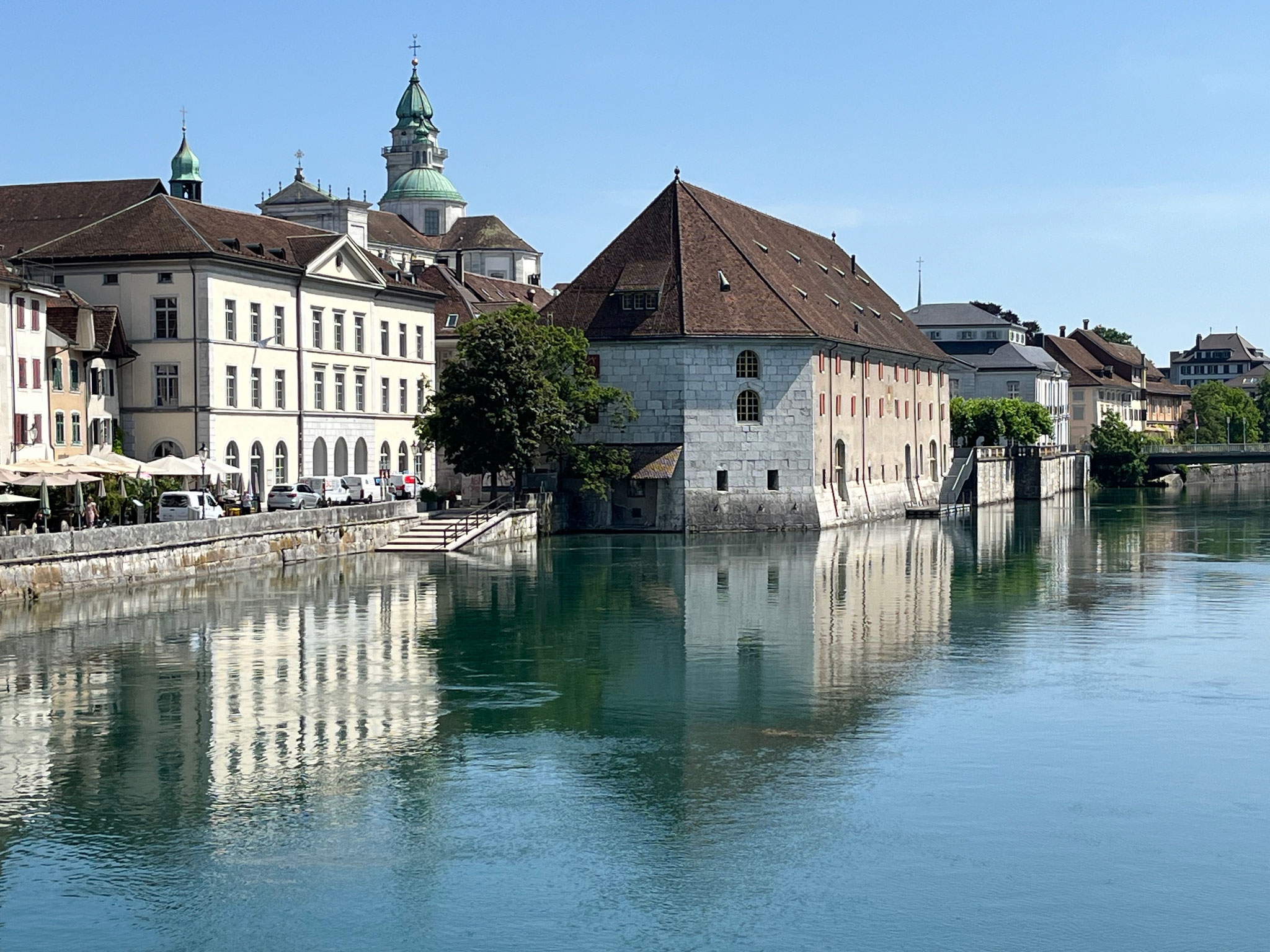 Am vereinbarten Treffpunkt versammelten sich 26 reiselustige Mitglieder des Bernervereins Frick zur diesjährigen Vereinsreise. Die Reise führte über Liestal, über den oberen Hauenstein nach Niederbipp, wo die Reisenden auf der Terrasse des Restaurant Brauerei, umgeben von schönen Blumen, einen Kaffeehalt hatten mit Gipfeli. Weiter ging es über die Landstrasse nach Solothurn. Im klimatisierten Bus von Kaufmanns Schwarb Reisen aus Möhlin war allen wohl und der Buschauffeur wusste immer etwas zu erzählen. In Solothurn angekommen hatte man über eine Stunde Zeit zum Verweilen. Diejenigen, die nicht so gut zu Fuss waren, führte der Chauffeur zuerst zur Schiffsanlegestelle, und unter schattigen Bäumen liess sich gut verweilen. Diejenigen die in die Stadt wollten, fuhr der Bus vors Baseltor, und liess sie dort aussteigen.Solothurn hat noch ganz viele Stadtmauern und gilt als schönste Barockstadt der Schweiz. Imposant ist die St. Ursen Kathedrale, mit ihrer grossen Treppe, die schöne, mit viel Stuckatur und Skulpturen versehende Jesuiten Kirche, die vielen Brunnen, der wundervolle Zeitglockenturm, der vor 2 Jahren renoviert wurde und in frischen Glanz erstrahlt. Es war Markt an diesem Tag und es hatte viele Leute. Viele schöne Cafés luden zum verweilen ein. Schön war es auch der Aare entlang und über die Brücken. So kamen wir zur Schiffs-Anlegestelle, und dort warteten schon viele Leute auf das Schiff. Das Bernerchörli sang dort das Lied: Dini Seel echli la bambele lah.